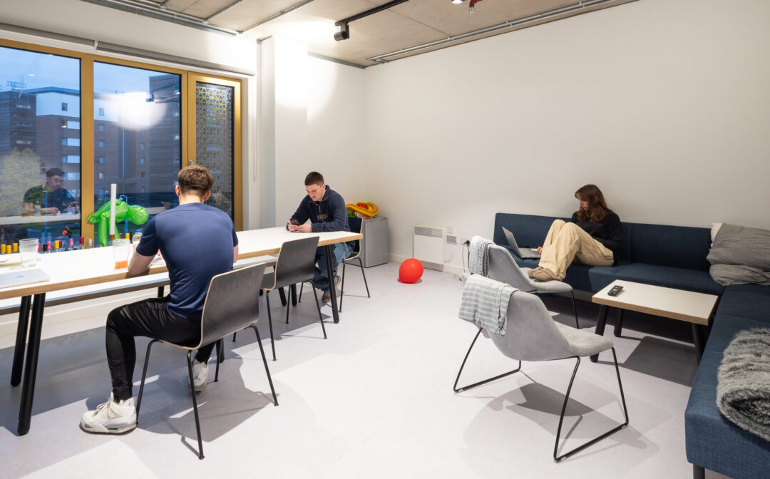 Now everyone’s in their groups, and especially when the weather’s bad, people are in their own flats a lot more. Like us, we hang out in our kitchen a lot. We only really use the communal spaces when we do laundry or play pool on a random Tuesday or something.
