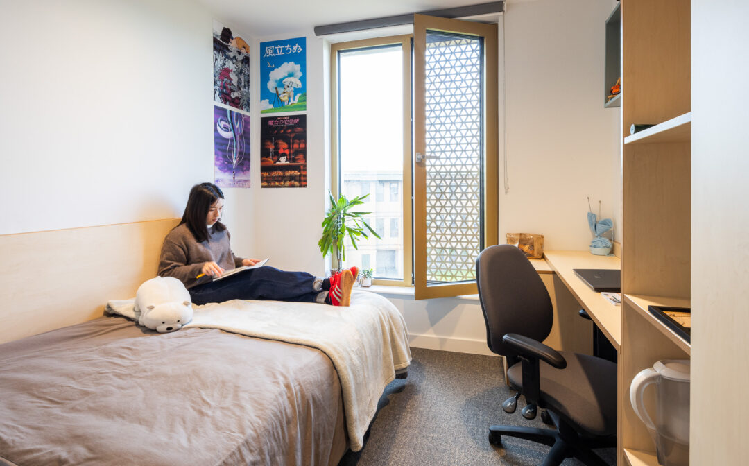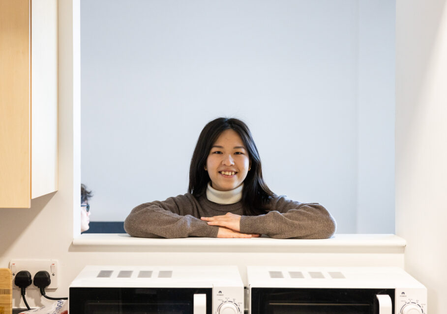 In my first year, I shared a flat with four others in Carroll Court (the building Purdown View replaced) so it’s interesting to compare the two. I really like the living room and kitchen layout here, especially the little window between the two. It makes it feel open and helps us be more sociable. You can talk to friends, but still do your own thing.