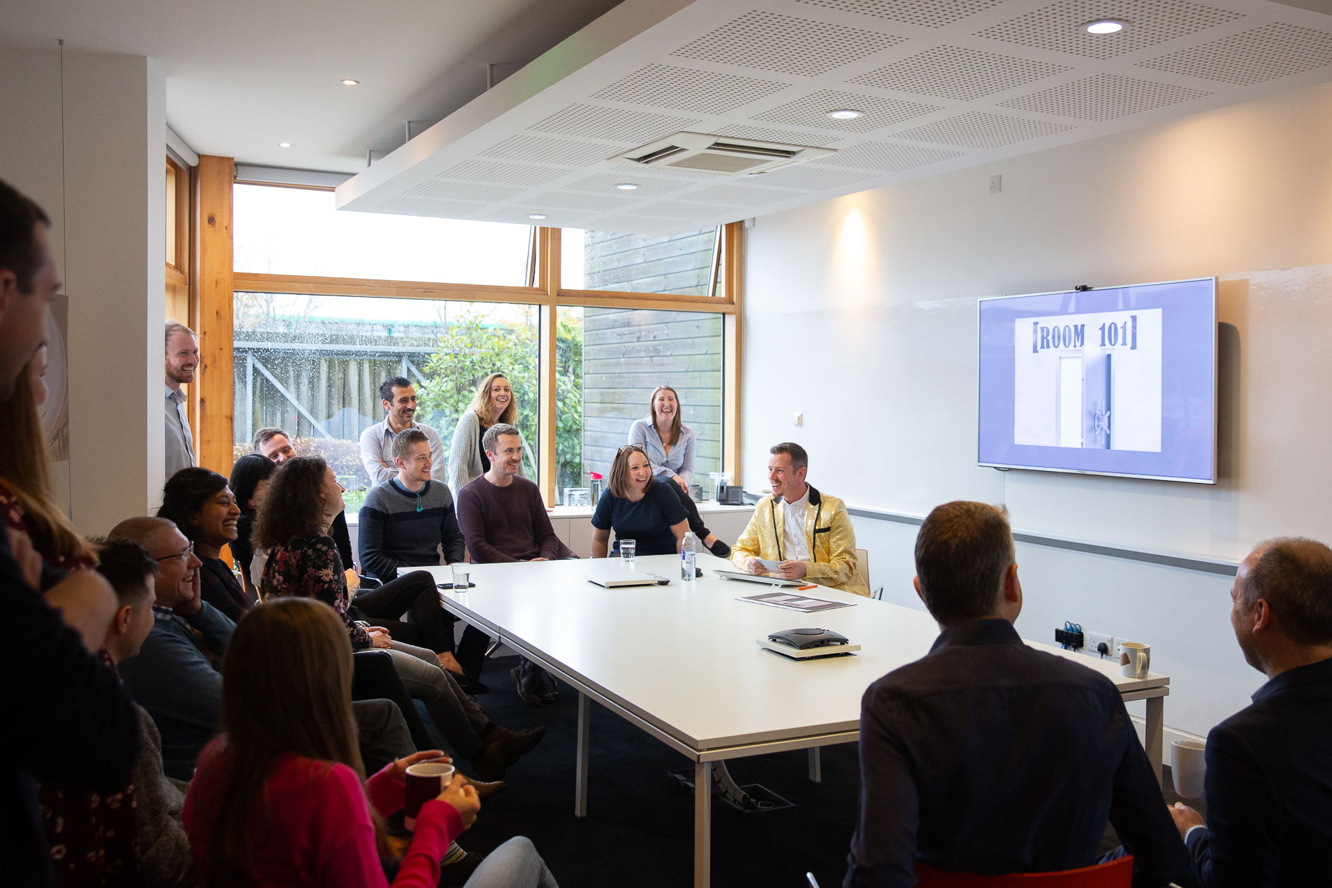 So here in this part of the network is where I create folders that cover different aspects of our cultural change. There are things like our social events where we have fun outside of work, there are the ‘Fun for Five’ challenges, and our ‘Devil in the Detail’ technical workshops. We do Room 101 which is brilliant. We’ve got Mezze which started with just eating lunch together. You bring anything like a one pound pot of humus or olives. Or you could have something that somebody’s made, like an orange cake. It’s spiralled from there. We did a spectacular Christmas Mezze run primarily by Alan where we had everyone around the table for Christmas dinner. We cooked it on two hot plates and two microwaves.