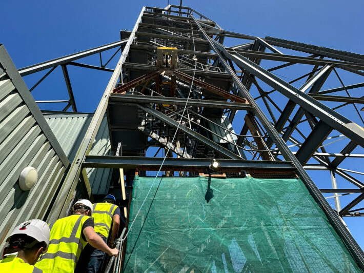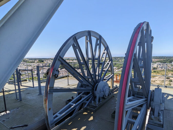 In July 2025, the design team had the opportunity to explore the existing site. They were shown the onsite facilities, including the changing rooms and shower blocks, which haven’t been used in over 30 years. The team also climbed the towering head frame and descended into the Cooks Kitchen shaft, giving them a sense of what it might have been like to work at the historic mine.