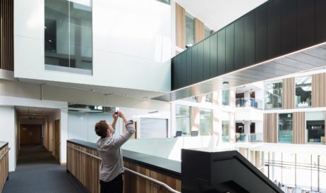 This world class facility promotes a cohesive relationship between campus, industry and local community with businesses, neighbours, visitors, 5,500 students and staff, all having access to a large café in the airy atrium, community services and a wide range of social learning workspaces to enable collaboration and greater interaction.